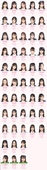 Names that are ''italicized'' denote that the member has announced their graduation. Names in '''bold''' denote AKB48 Group General Manager. Names are listed by generation according to the official website. | |||