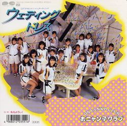 "Wedding Dress" is Onyanko Club's tenth single. This was the group's single release until the 2002 reunion as the group disbanded on August 1987. The single reached #2 on the weekly Oricon charts, only beaten by Hikaru GENJI with their single "STAR LIGHT". The single charted for seven weeks, selling 90,000 copies. The single was also released as a three track maxi single on a 8cm CD four months after it's initial release on 7-inch record.